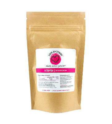 Zutaten: Ascorbinsäure, Hagebutten, Stearinsäure, mikrokristalline Cellulose, Hydroxypropylmethylcellulose, Dicalciumphosphat, Magnesiumstearat, Kieselsäure, Carob,